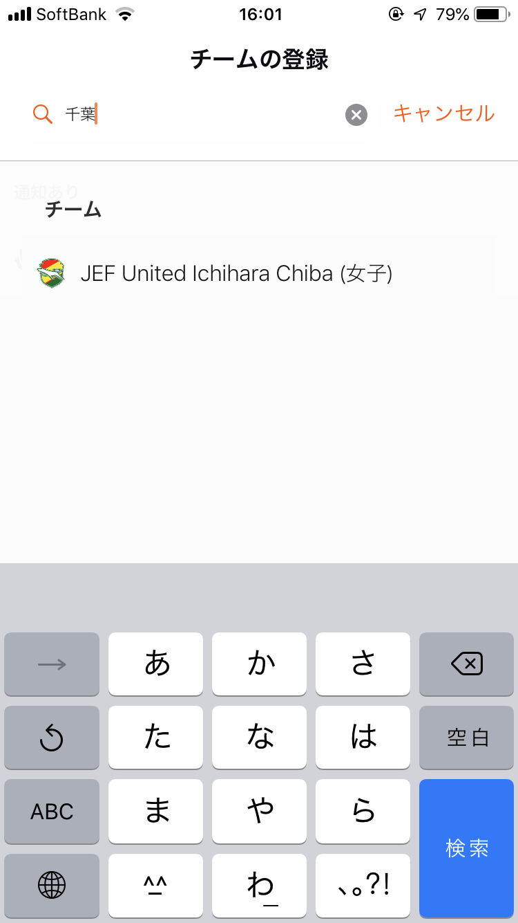 一例としたですが、J2のジェフ千葉を登録したい場合に、千葉、と入力すると自動検索で表示されるのが、ジェフ千葉のレディースチームのみの表示になってます。