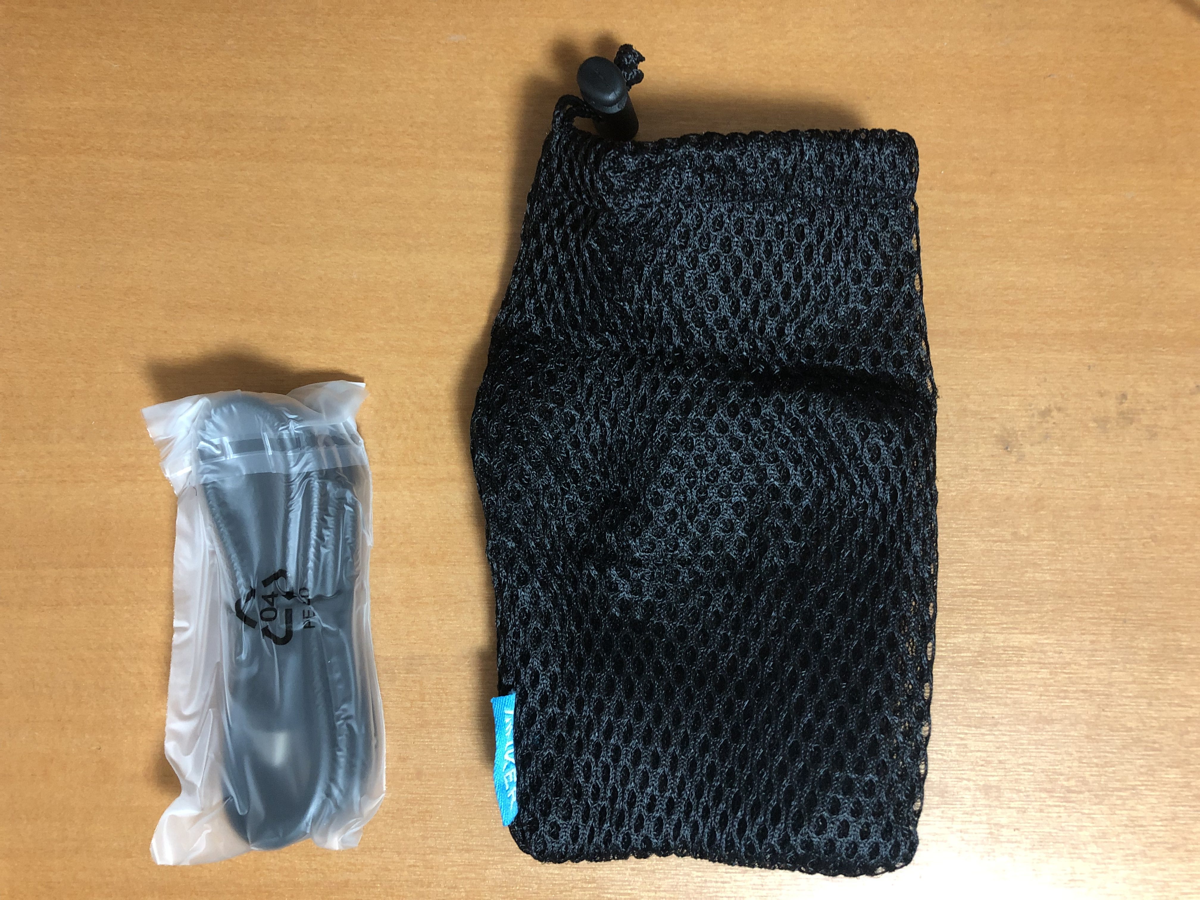 収納袋は、メッシュ素材になっていて、通気性の高いものになっています。メーカー名の入った水色のタグがついています。