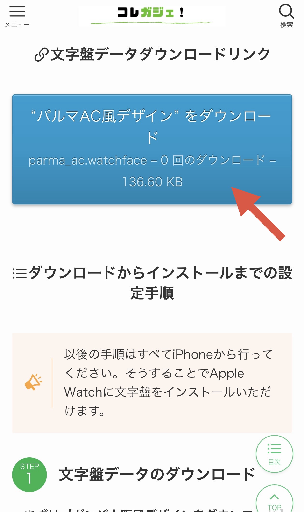 まずは【パルマAC風デザインをダウンロード】をタップ