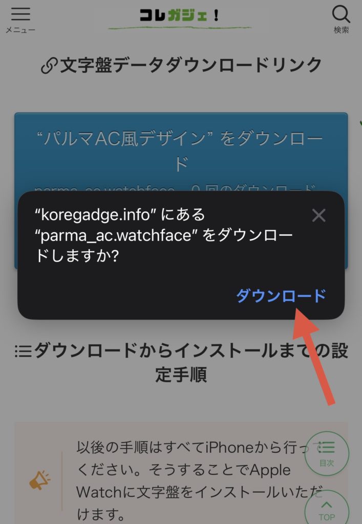 すると、【(文字盤データ)をダウンロードしますか?】という確認がでるので、OKだったらダウンロードをタッチ