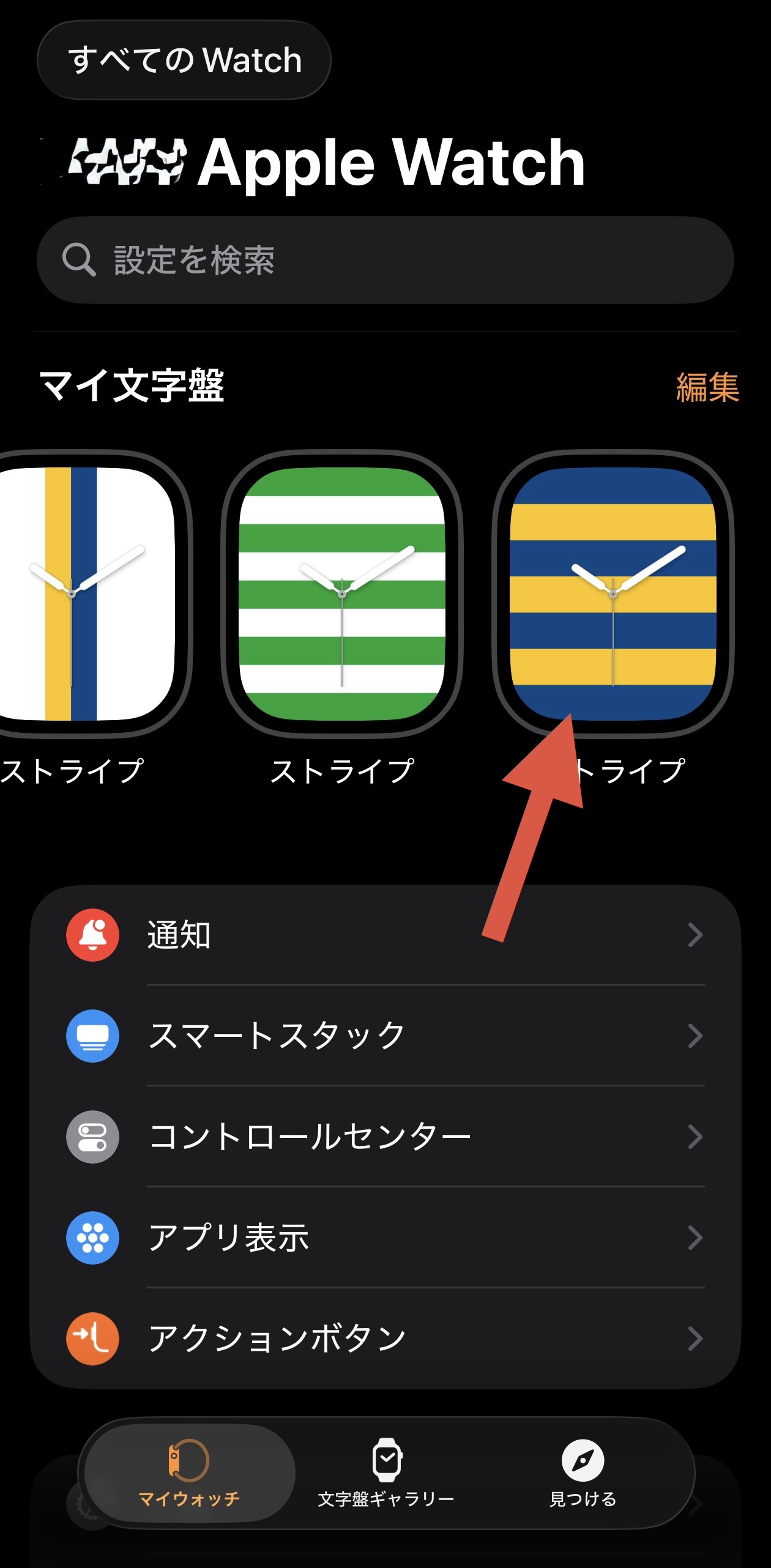 ダウンロードした文字盤データをタップ