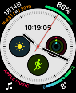 真冬のロンドンは、晴れることが少なく、曇り空の時が多いのですが、Apple Watch側の風景は、青空の写真となっています。