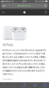 AirPodsへのフィードバック登録ページ(公式)