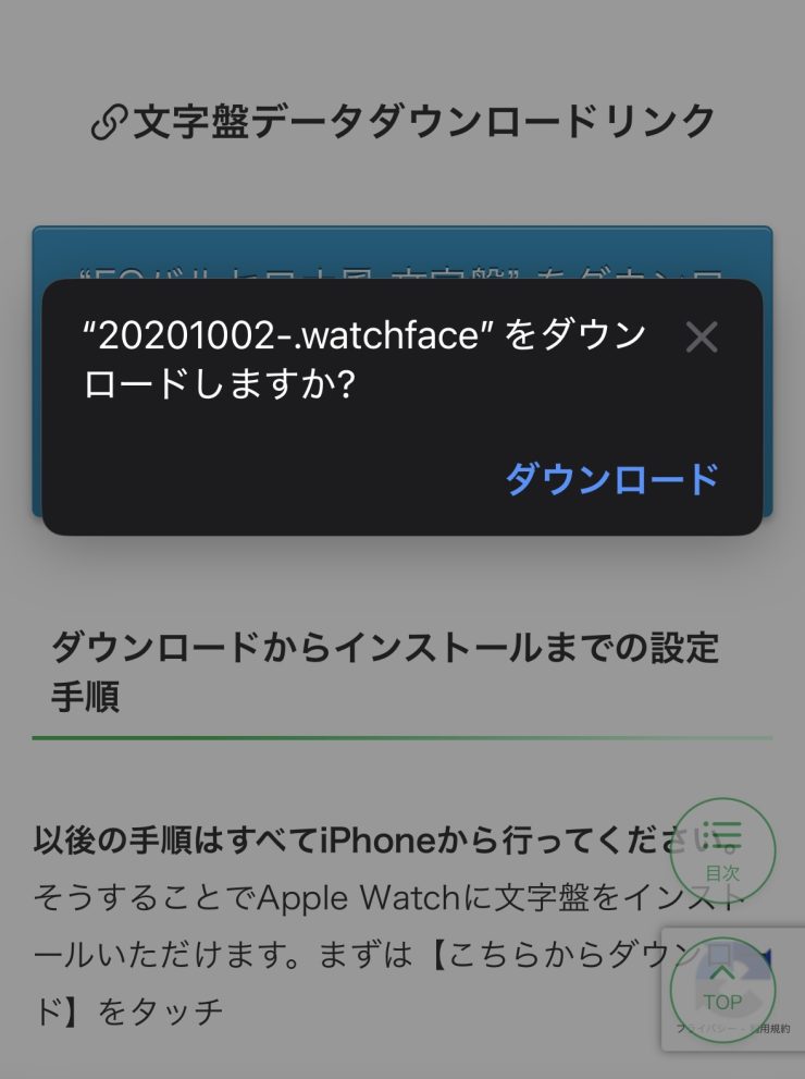すると、【(文字盤データ)をダウンロードしようとしていますか?】という確認がでるので、OKだったらダウンロードをタッチ