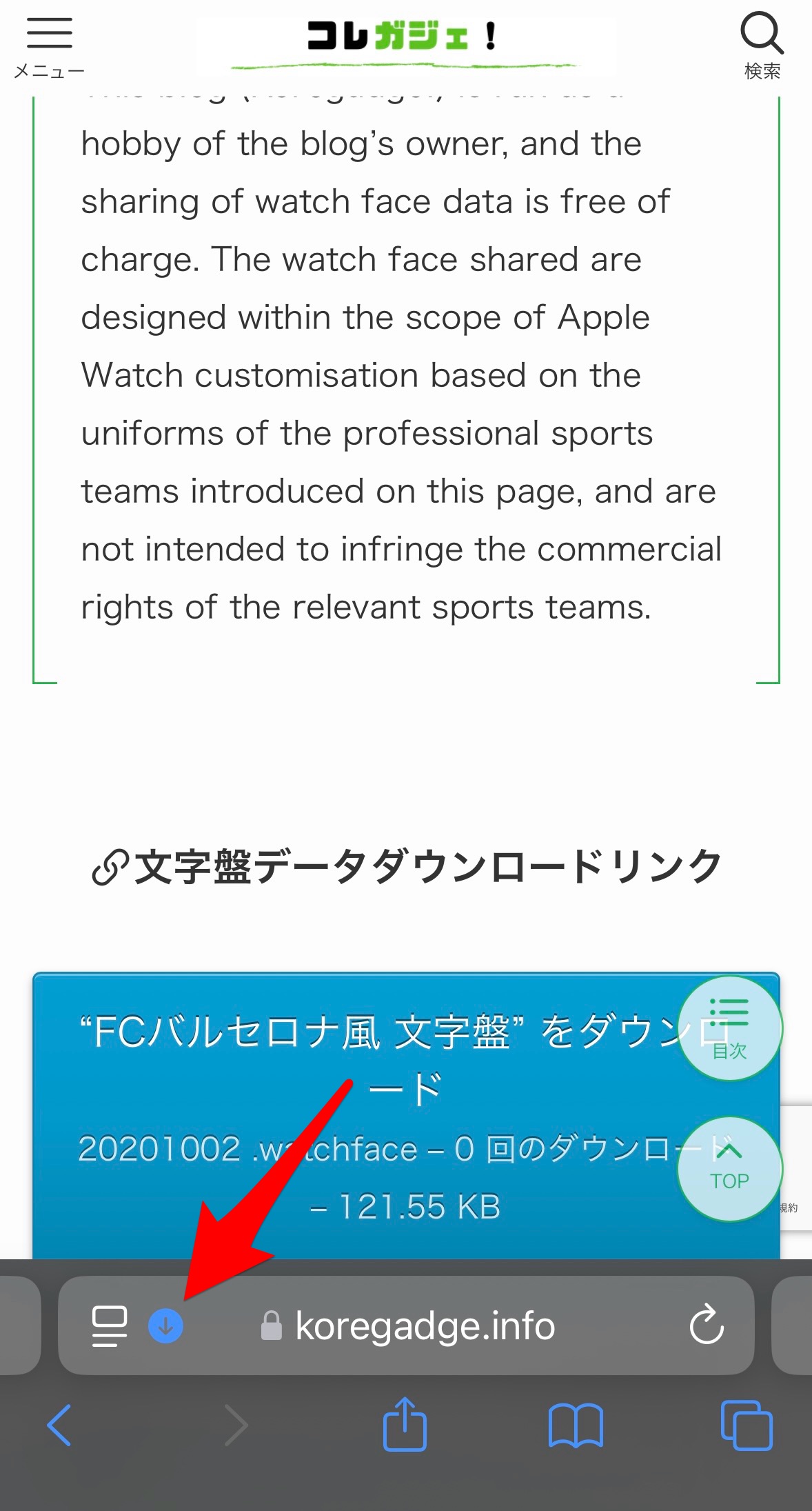 ダウンロードが終わったら、Safariのダウンロードアイコン部分をタップ