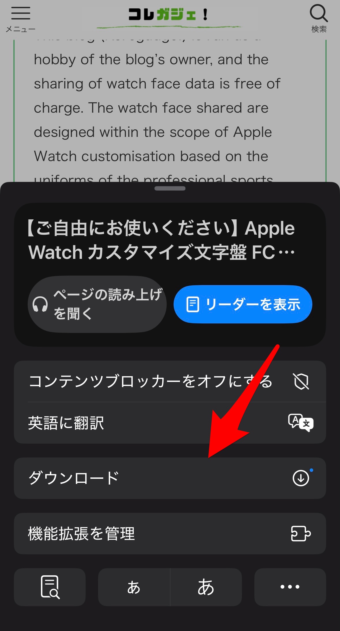 すると、サブメニューが表示されるので、その中からダウンロードをタップ