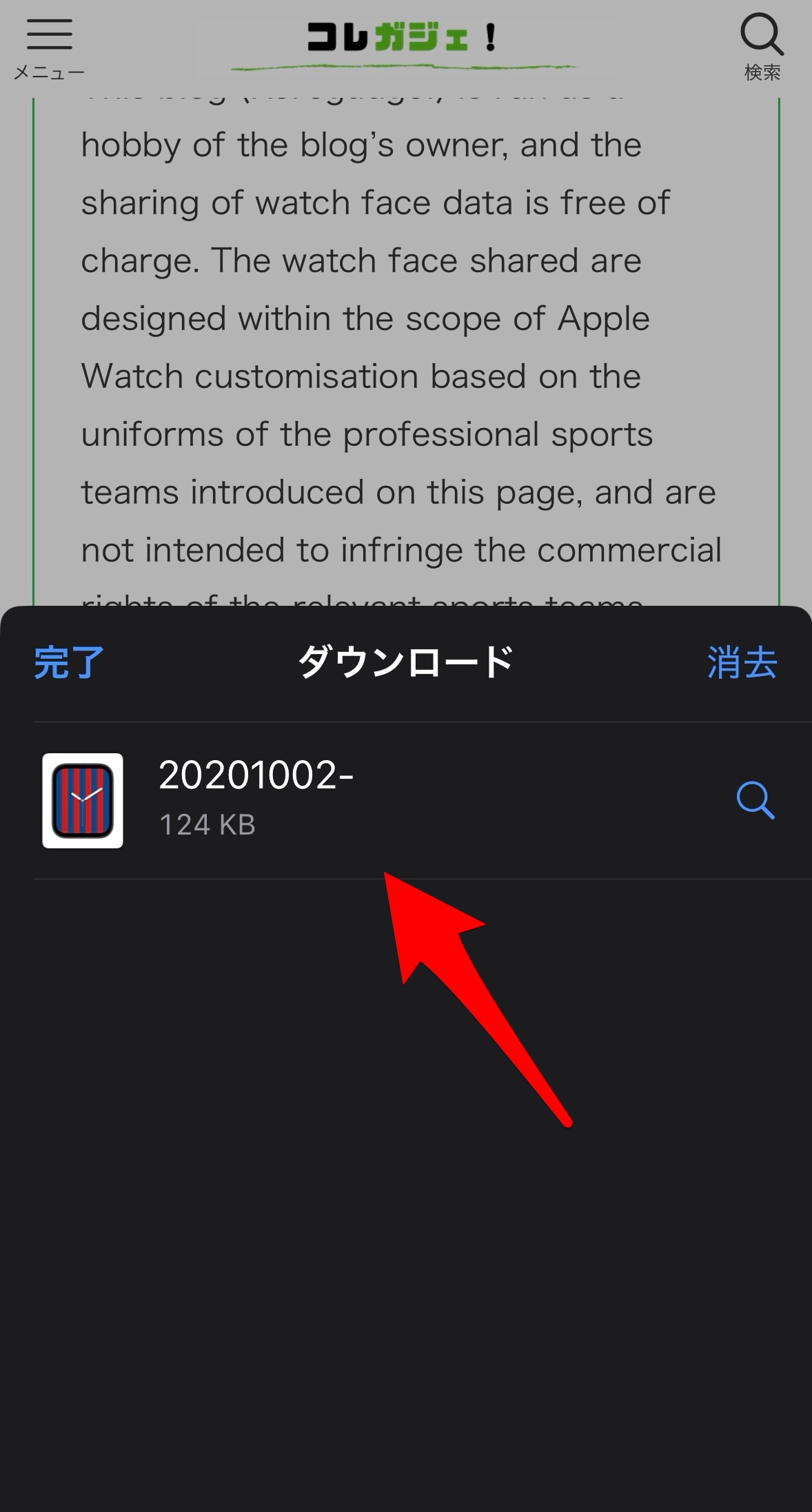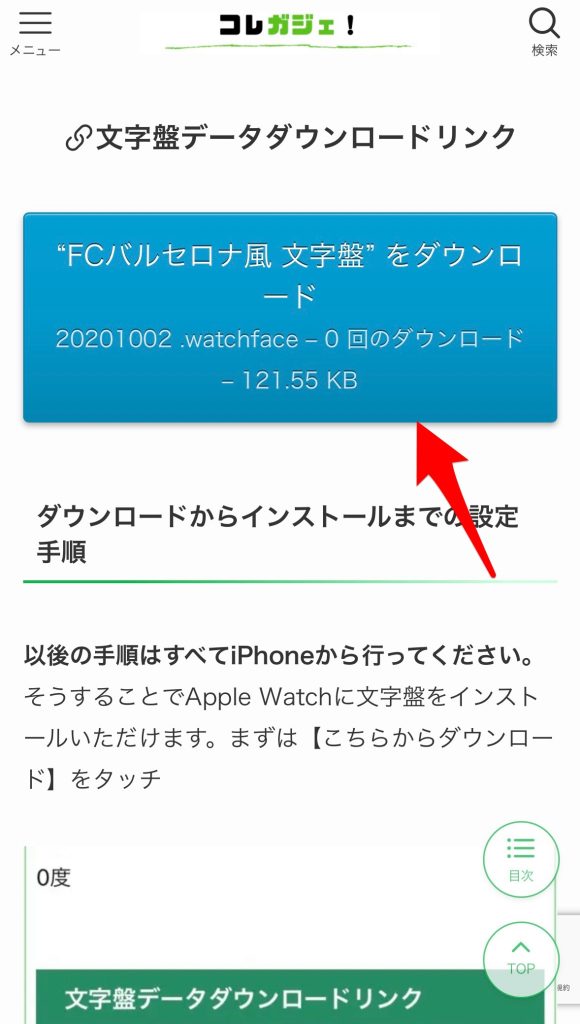 まずは【FCバルセロナ風 文字盤をダウンロード】をタップ