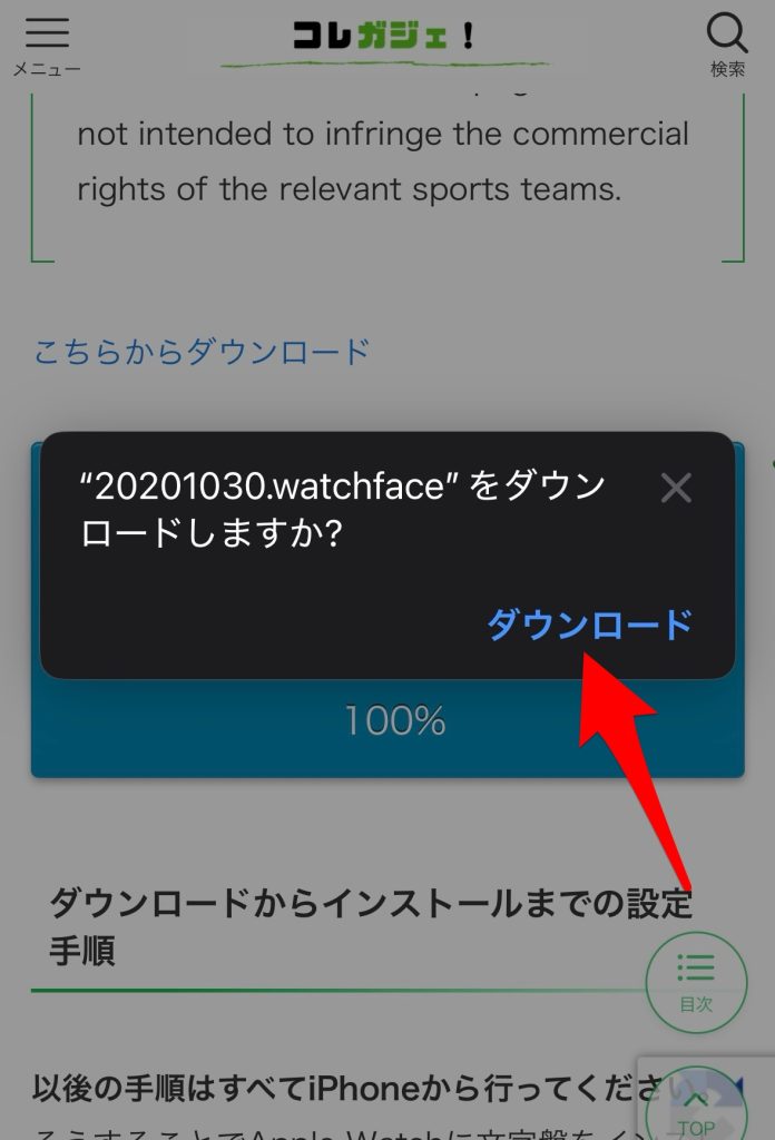 すると、【(文字盤データ)をダウンロードしようとしていますか?】という確認がでるので、OKだったらダウンロードをタッチ