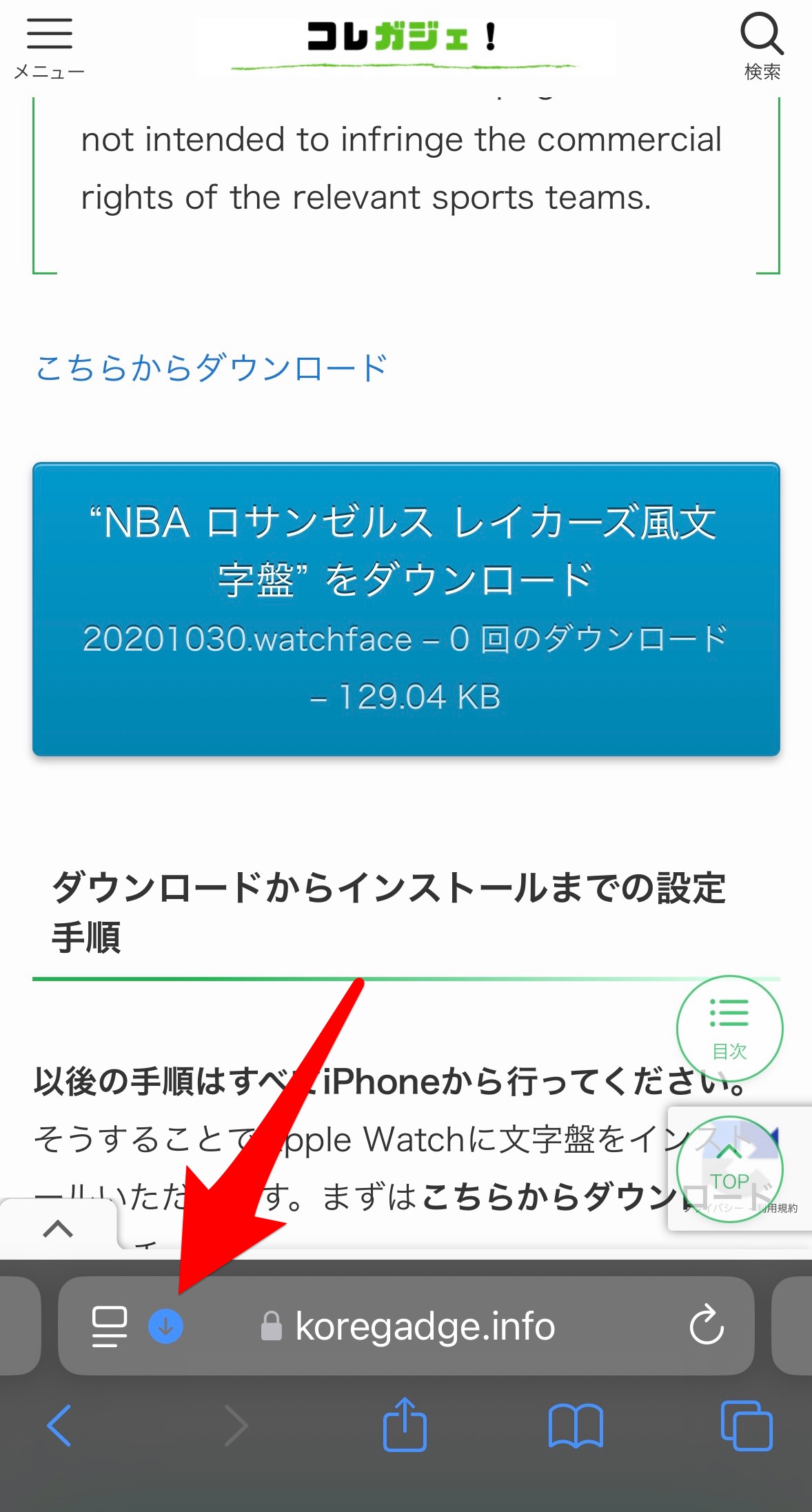 ダウンロードが終わったら、Safariのダウンロードアイコン部分をタップ