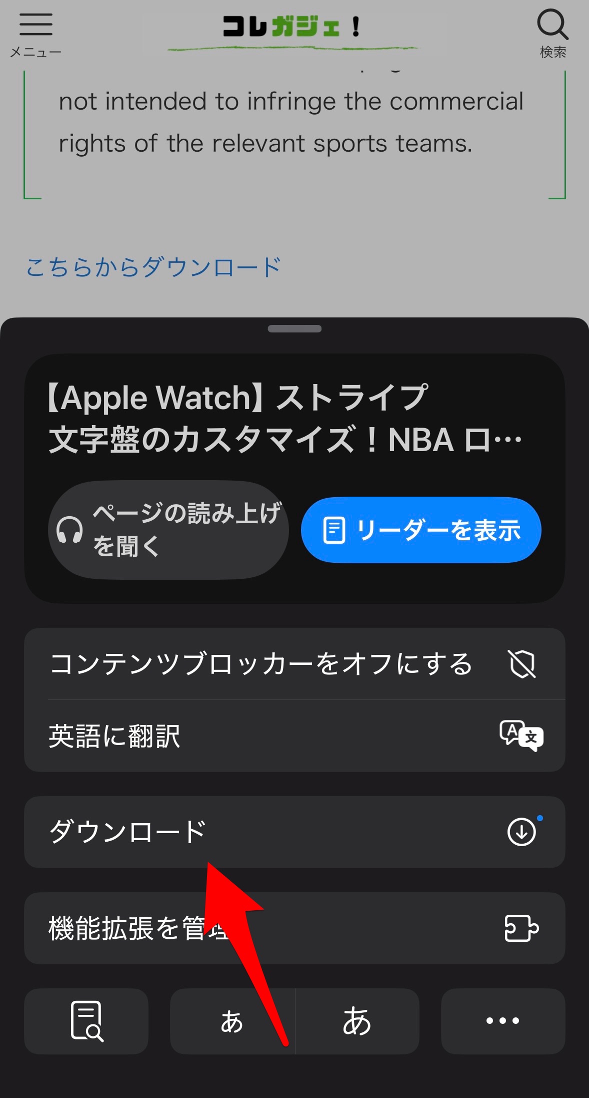 すると、サブメニューが表示されるので、その中からダウンロードをタップ