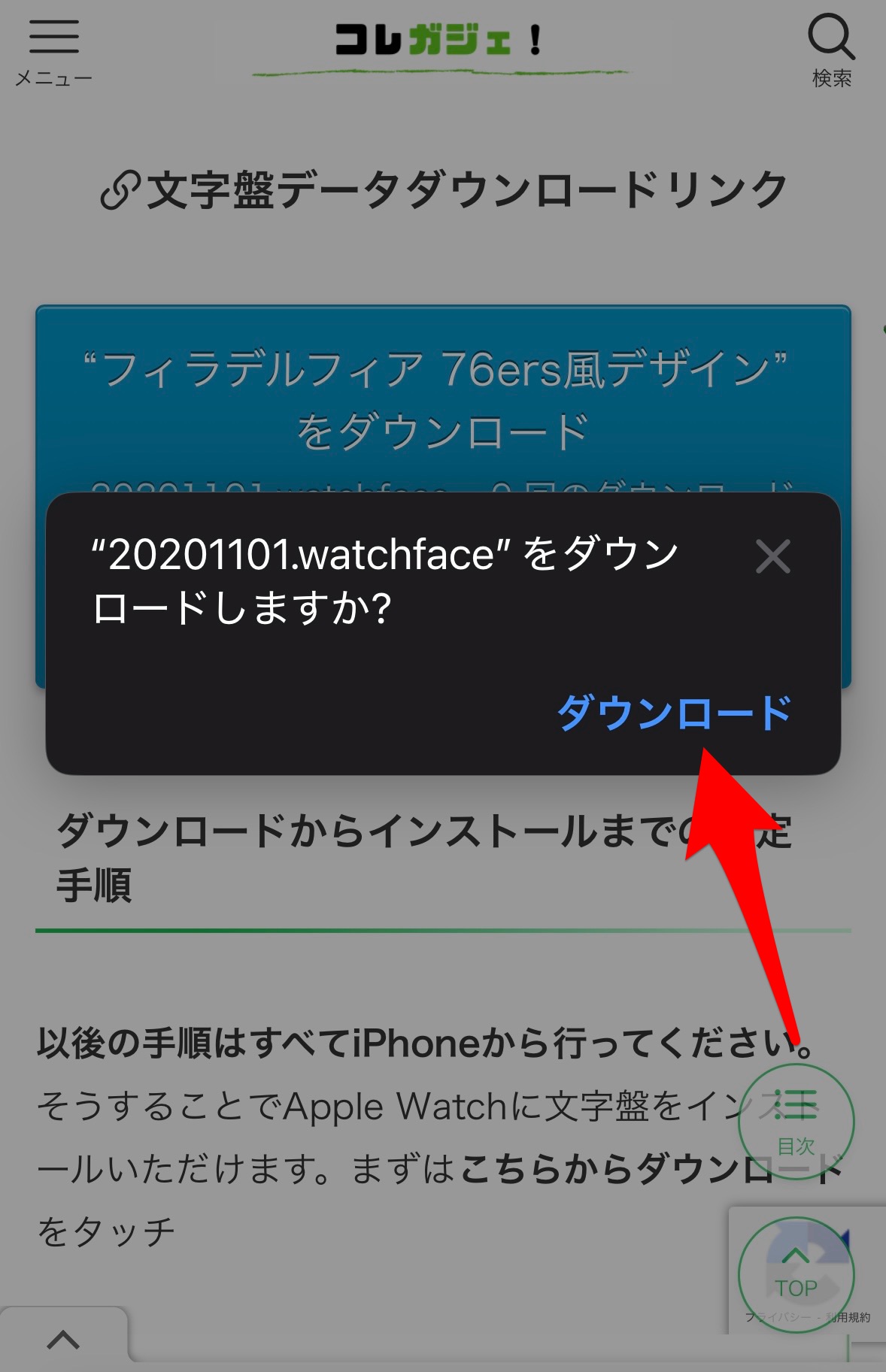 すると、【(文字盤データ)をダウンロードしようとしていますか?】という確認がでるので、OKだったらダウンロードをタッチ