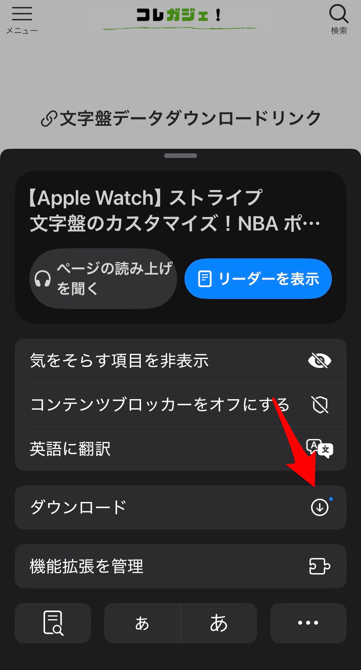 すると、サブメニューが表示されるので、その中からダウンロードをタップ