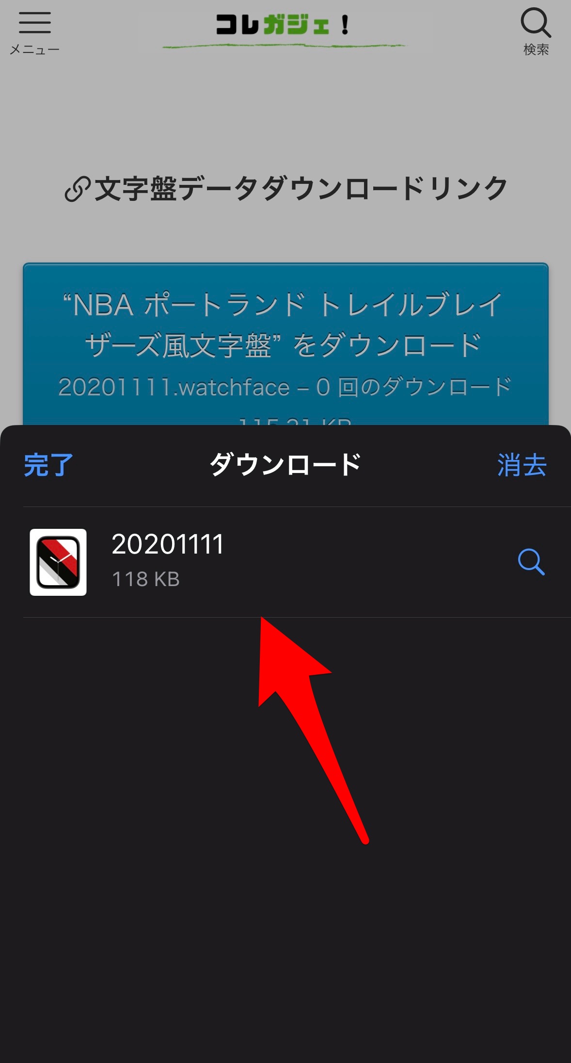 まずは【NBAポートランド トレイルブレイザーズ風文字盤をダウンロード】をタップ