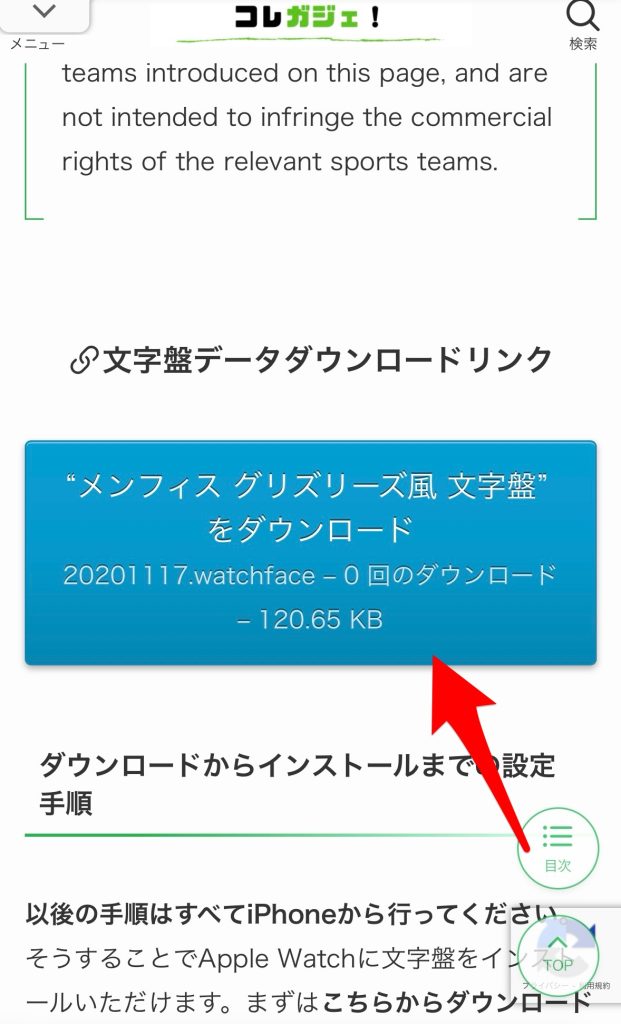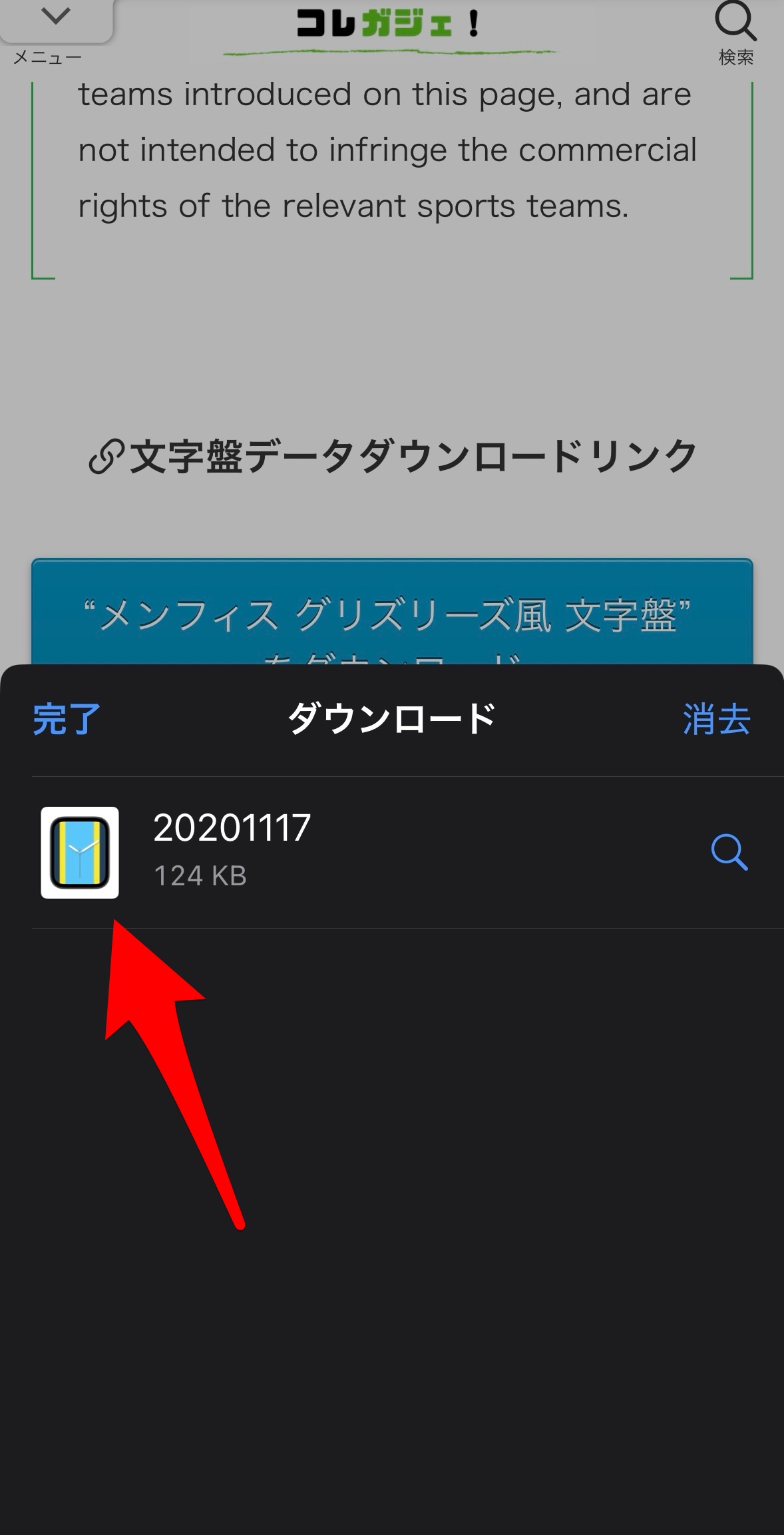 まずは【メンフィス グリズリーズ風文字盤をダウンロード】をタップ