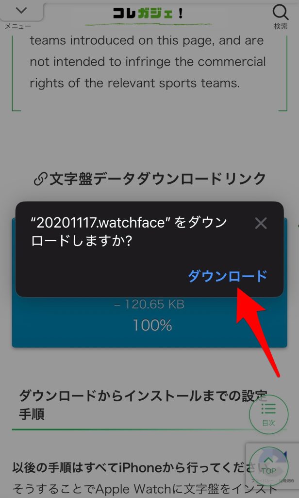 すると、【(文字盤データ)をダウンロードしようとしていますか?】という確認がでるので、OKだったらダウンロードをタッチ