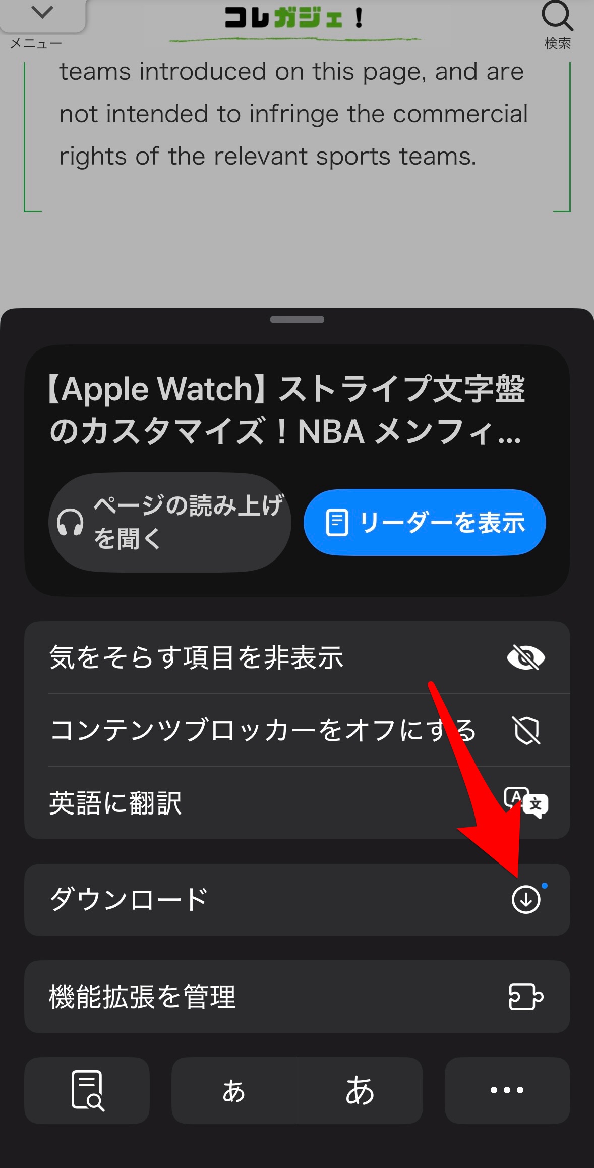 すると、サブメニューが表示されるので、その中からダウンロードをタップ